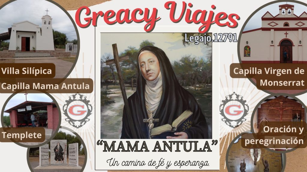 Desde Las Termas de Rio hondo, hacia el sur, transitando por Ruta Panamericana N° 9, atravesaremos las ciudades de Santiago del estero, Arraga, El simbol, hasta llegar a Cilla Silipica, lugar de nacimiento de Maria Antonia Paz y Figueroa. Visitaremos la Capilla de Ntra Señora de Monserrat con su historia relatada. Luego conoceremos la Capilla de MAMA ANTULA, compartiendo un momento de oracion, historia y testimonios. Terminando con una hermosa peregrinacion de fe y esperanza hasta el templete (tierra milagrosa)